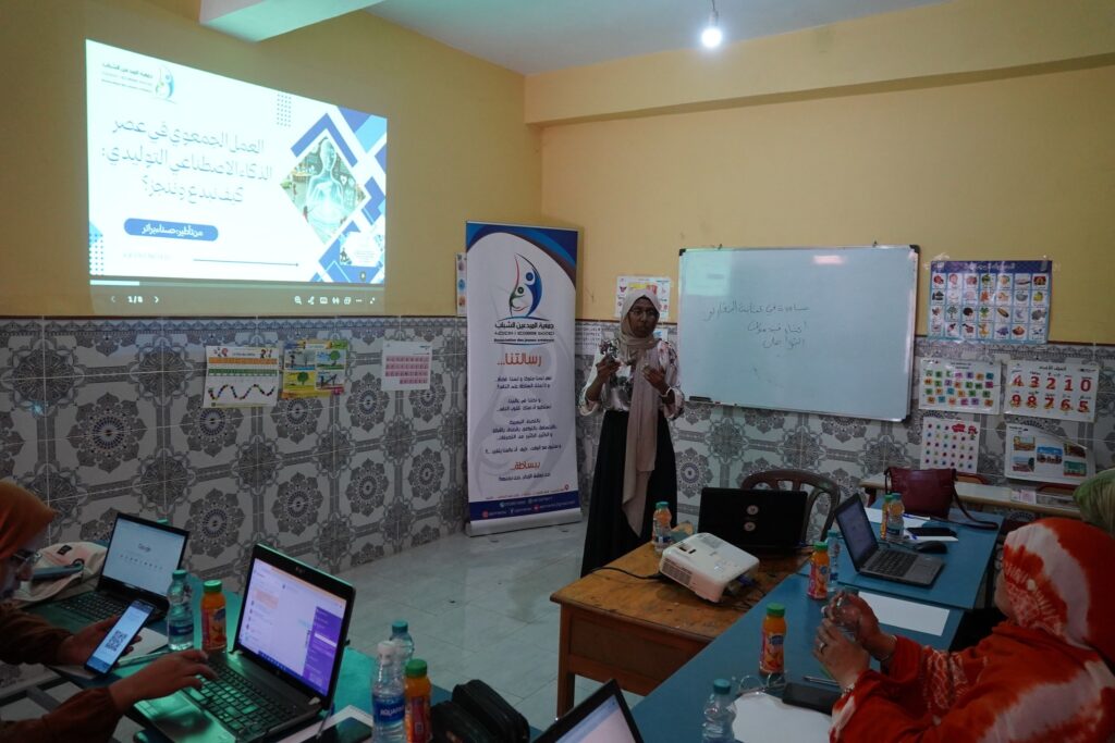 As part of the “Empowering Women’s Capacities” project, the Young Creators Association in Guelmim, with support from the FFMED Foundation, organized a training session entitled “Associative Work in the Age of Generative AI: How to Innovate and Achieve”. The session took place on the evening of April 20, 2025, at the headquarters of the Sahrawi Women’s Association in Guelmim and was facilitated by Ms. Hasnaa Brair.