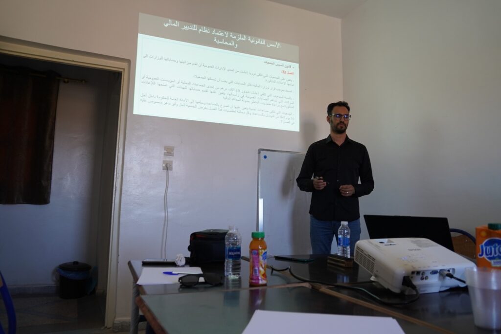 The facilitators covered three main themes during the workshop. The first focused on the legal foundations that require associations to adopt a financial system, including a presentation of the Moroccan law governing associations—particularly the need to establish a transparent and organized financial system subject to accounting and oversight.